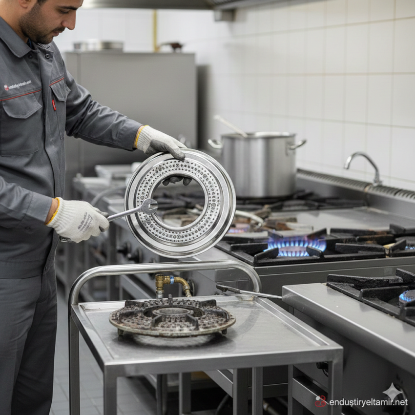 Endüstriyel mutfaklarda cihazların ömrünü sadece parça değişimiyle değil, düzenli temizlikle de koruyabilirsiniz. Her gün sonunda brülör kafalarını hafif nemli bir bezle silmek, yağların gözeneklere işlemesini engeller. Özellikle kızartma ünitelerinin yakınındaki ocaklarda yağ buharı brülörlerin en büyük düşmanıdır. Bu buhar zamanla katılaşarak gaz çıkışını engeller. Haftalık periyotlarla yapılan yüzeysel temizlik, ani arızaların önüne geçer. Ancak derinlemesine temizlik ve iç aksam kontrolü için mutlaka teknik bir destek almanız gerekir.